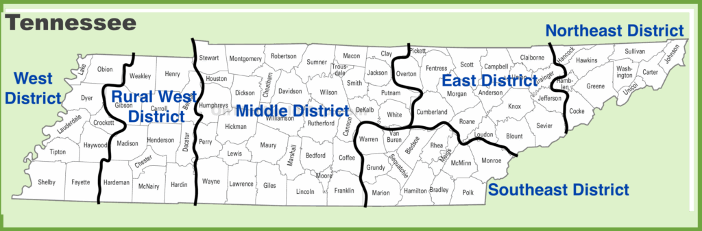 TNOTA is divided into the 6 districts below. Each TNOTA District has a Chair, Vice Chair, and Secretary.